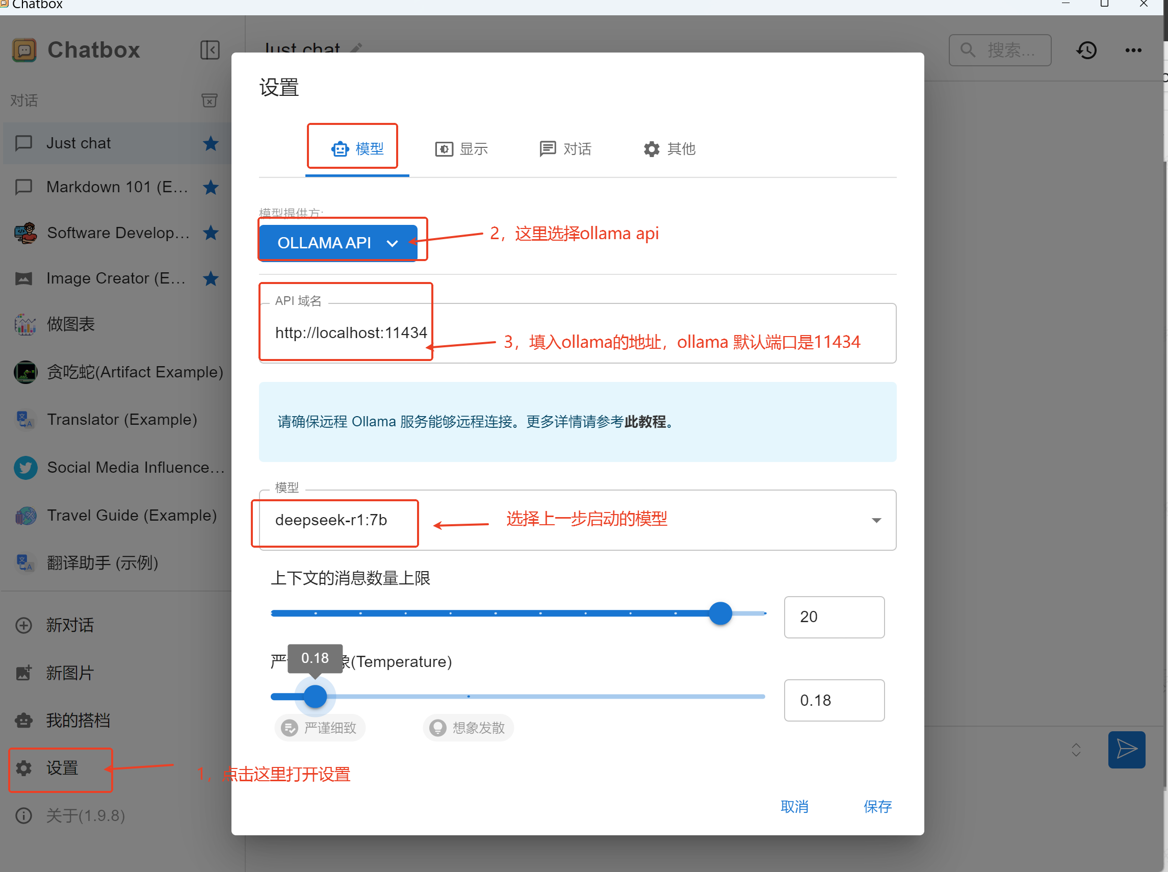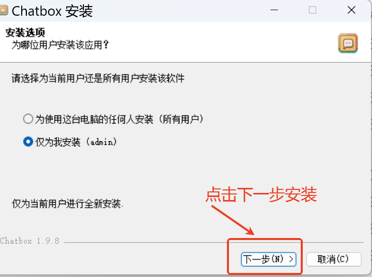 主要流程如下,如果选择非Chatbox,替换安装流程即可