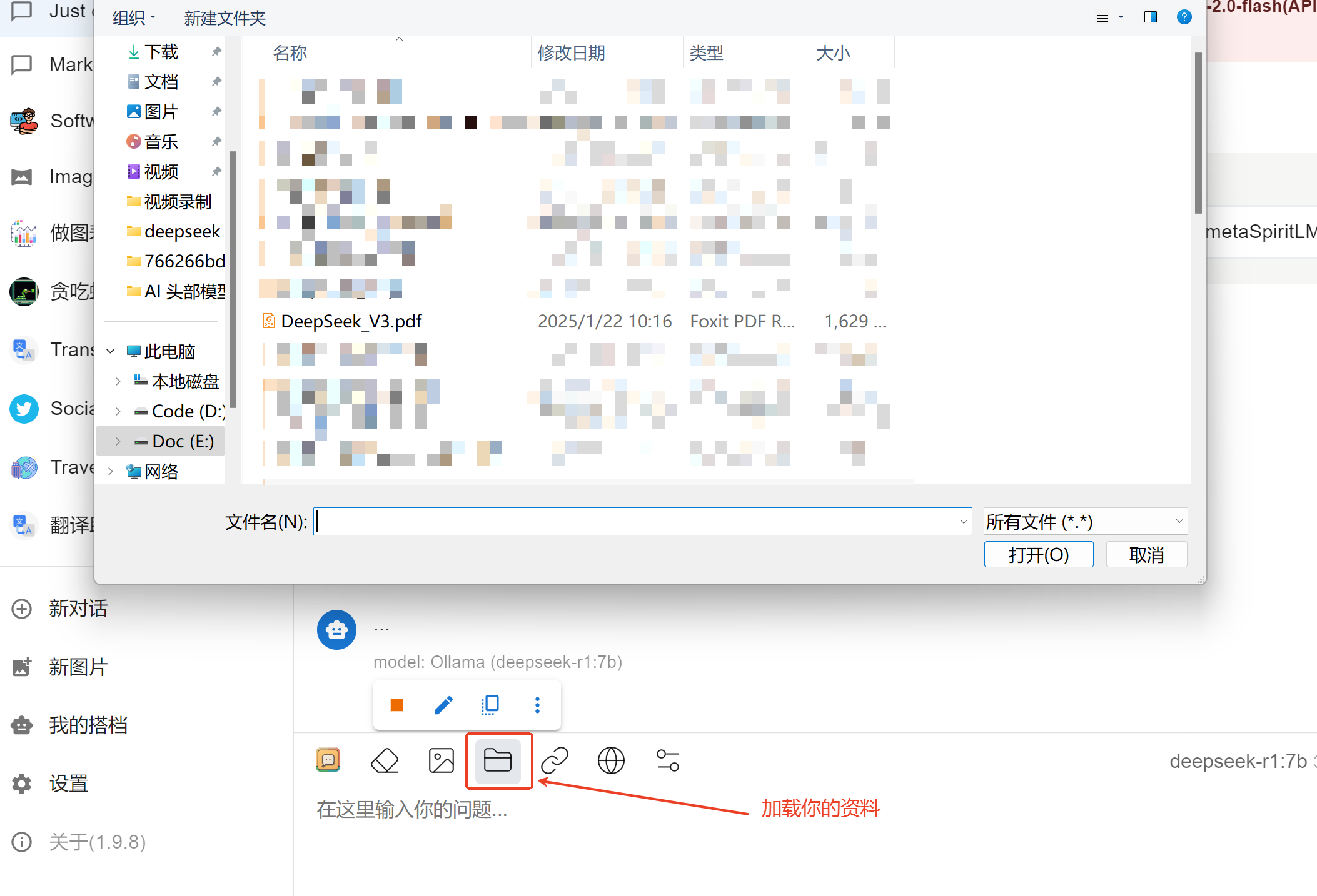 加载知识库(例子里用了deepseek v3 的技术报告)