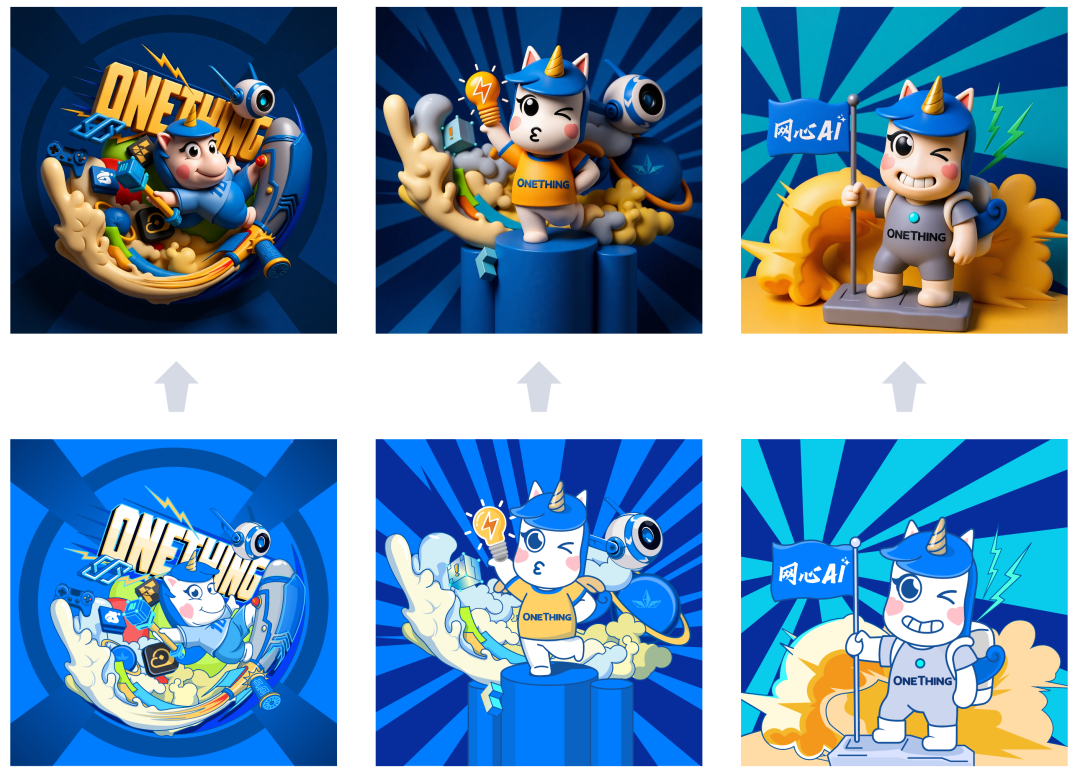不管生成多少张图,3D风格不断是3D风格,二次元始终是二次元,不会突然改变图像质感且风格还原度接近100%,品牌设计、IP创作超省心。
