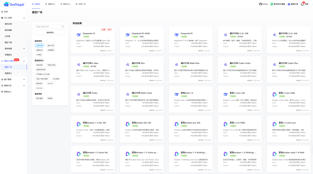 现在访问www.onethingai.com完成注册,就能在模型广场快速接入。平台不仅给予覆盖全流程的工具链,更配备了充足的算力支持,助力开发者、企业用户将强大的模型能力部署到实际业务环境中,实现效率跃升。