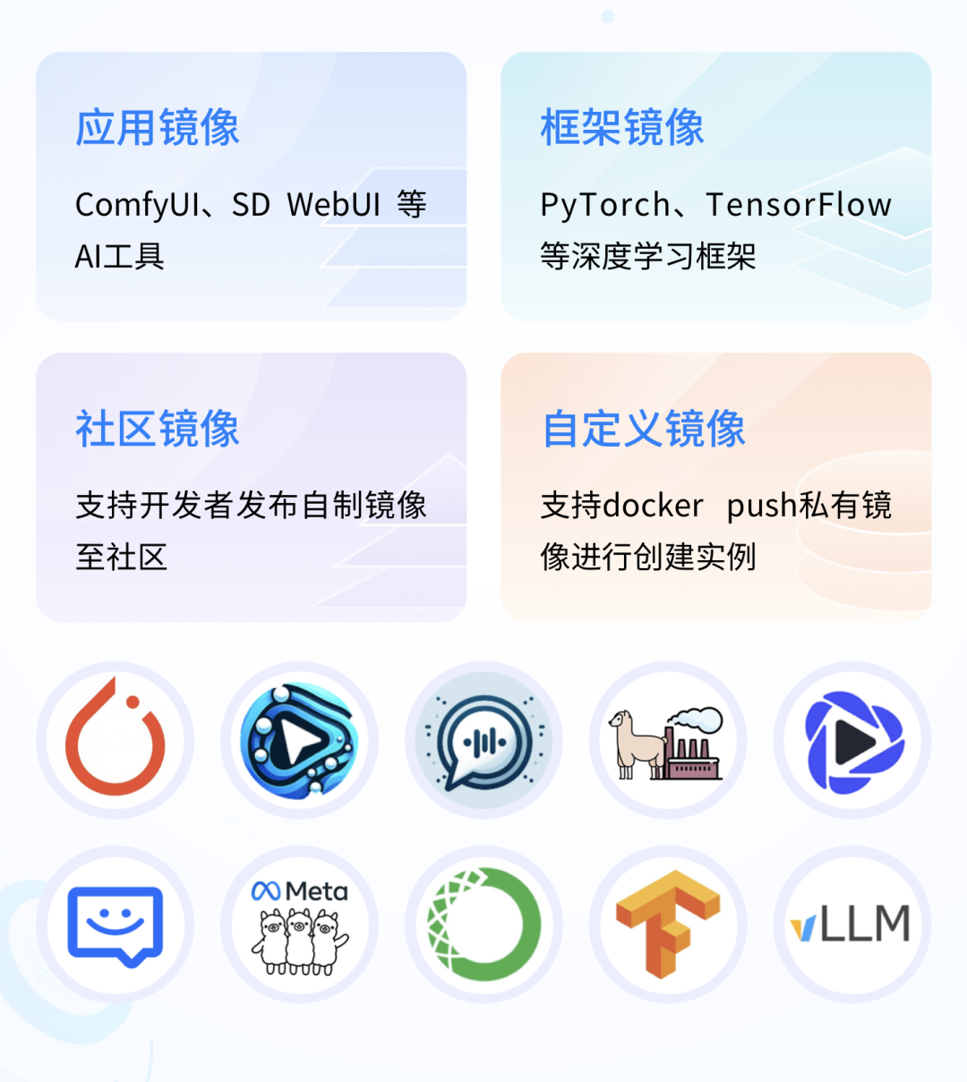 Ebpay算力云打造了 GPU 实例服务“三叉戟”:以云容器敏捷交付算力资源,保障 AI 训练与推理稳定高效运行;Serverless GPUs 给予自定义模型免运维部署,支持自动弹性伸缩、负载均衡、秒级冷启动;云主机直接交付全栈控制权,让算力成为你量身定制的“生产力工具”。不仅如此,平台已预装了主流的模型镜像与学习框架,大幅提升了使用便捷性,真正做到开箱即用。