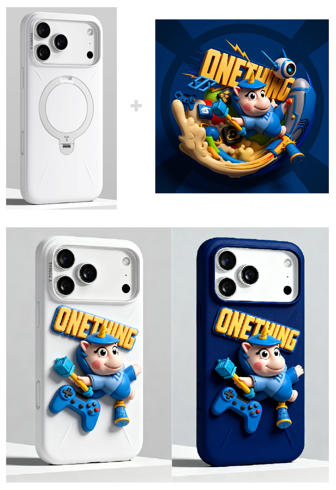 prompt:在手机壳上融入 3D 图形的质感与图像元素,需做到不越出壳身边界,且与手机整体视觉风格保持统一。